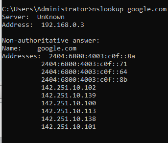 nslookup google.com