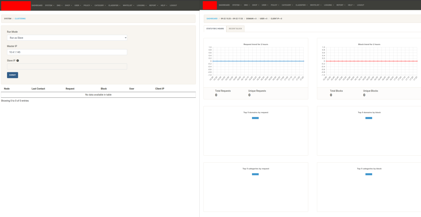 What do you see in /nxfilter/log/nxfilter.log file on your slave node? No error for connecting the master node?